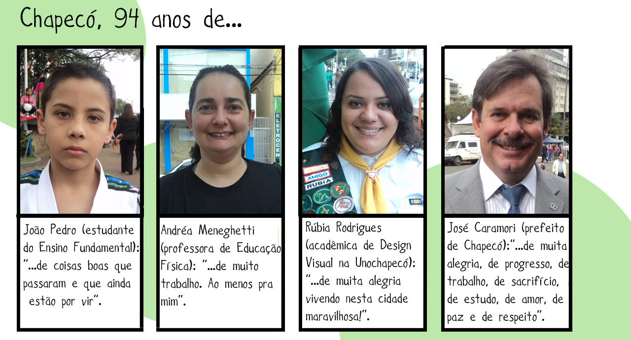 “Palavras rápidas, porque o dia é de emoção”. José Caramori, que em uma das mãos segurava a tradição gaúcha do chimarrão, lembrava dos primeiros tropeiros que aqui chegaram, e não mediu palavras para falar da colonização chapecoense e do que é pra ele os 94 anos desta cidade. Segundo ele, “Chapecó tem algo diferente das outras cidades. Em Chapecó, os que vieram primeiro estenderam as mãos para os que vieram depois. Nascidos aqui ou não, todos são bem recebidos”.