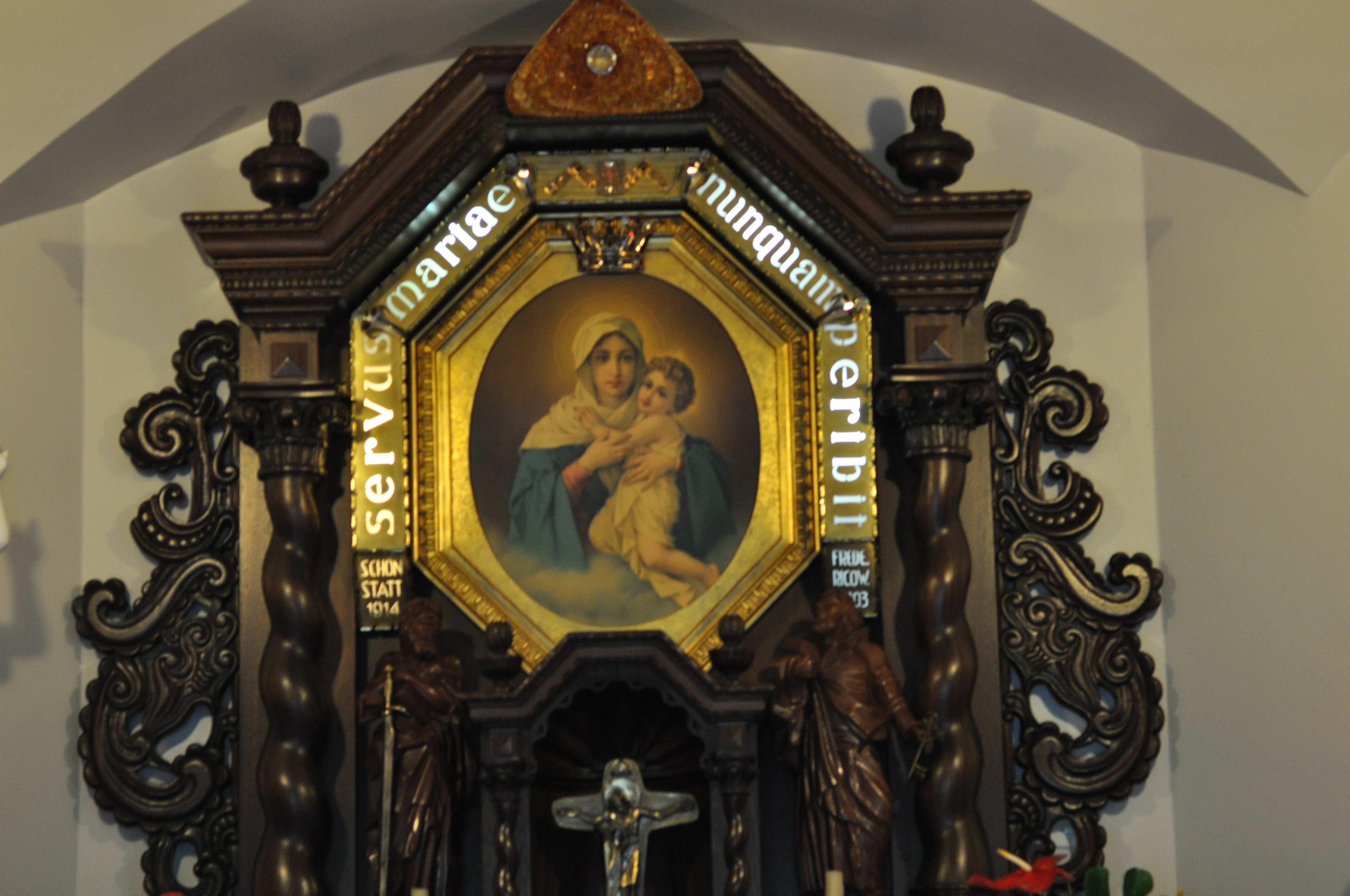 Altar da capela no Santuário carrega foto da Mãe Três Vezes Admirável de Schoenstatt. Foto: Carina de Oliveira