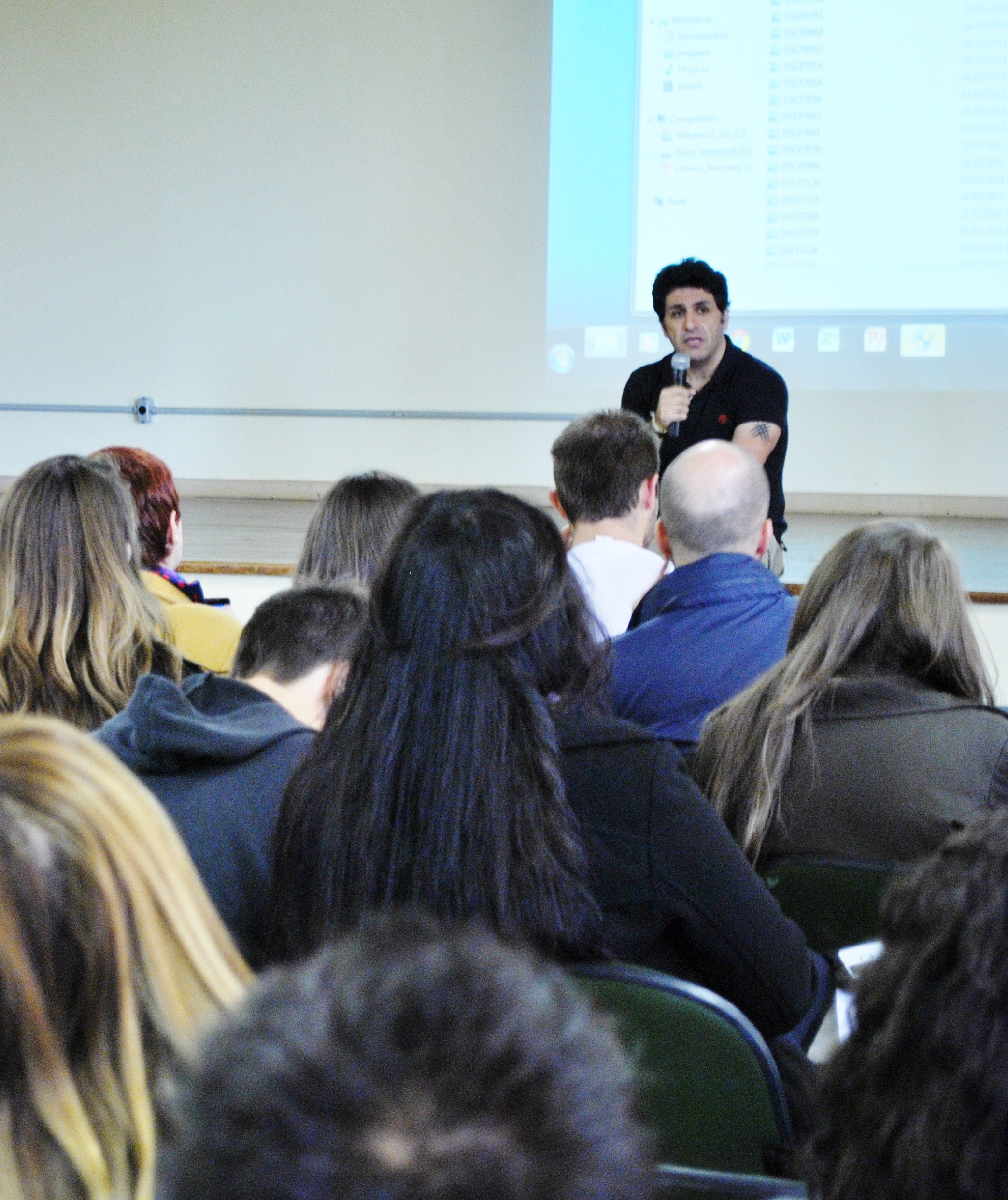 Os estudantes de comunicação social da UFSM-FW assistiram ontem a uma palestra ministrada pelo jornalista Tariq Saleh, no Auditório do CAFW. Ele trabalha há oito anos com jornalismo de conflito no Oriente Médio, e é correspondente da BBC World Service e diversos outros jornais da Europa e América Latina.