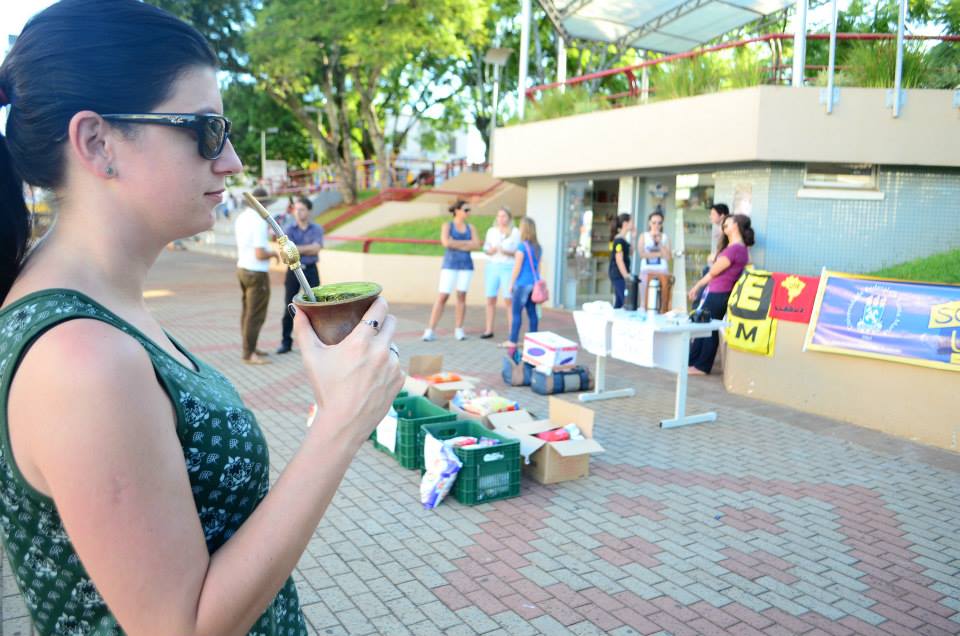 Para encerrar as atividades que aconteceram na Semana da Calourada deste primeiro semestre de 2015, o campus de Frederico Westphalen do Centro de Educação Superior Norte do RS, o CESNORS – pertencente à Universidade Federal de Santa Maria – organizou a Mateada Solidária. A atividade aconteceu na quarta-feira, 11 de março, na Praça da Matriz contando com o apoio do Diretório Central dos Estudantes, o DCE, junto aos Diretórios Acadêmicos dos cursos que recebem novos calouros neste semestre: o DA Guilherme Trevisol, do curso de Agronomia, o DA de Jornalismo e o de Engenharia Ambiental.